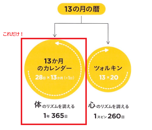 13の月の暦は、365日(28日×13カ月+1日)とツォルキン260日(13×20)の2つのサイクルが織りなすリズムで体と心を整えてくれるカレンダーです。